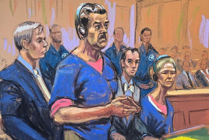 Venezuela’s captured President Nicolas Maduro and his wife Cilia Flores attend their arraignment with defense lawyers Barry Pollack and Mark Donnelly